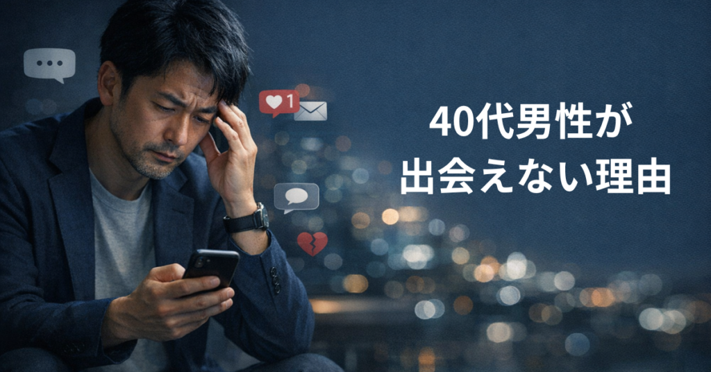 「若い頃より明らかに出会いが減った」「マッチングアプリを使っても全然うまくいかない」「見た目も収入も普通だと思うのに、なぜか女性とつながれない」 こう感じている40代男性は少なくありません。 実際、40代になると20代や30代の頃とは違って、自然... -